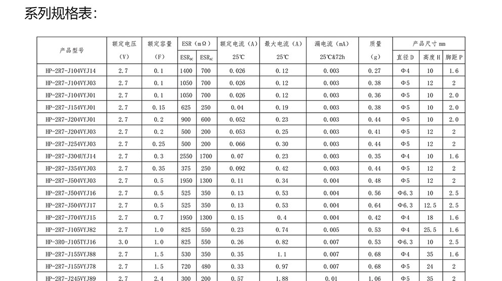 超級電容器 HP系列 微小引針型