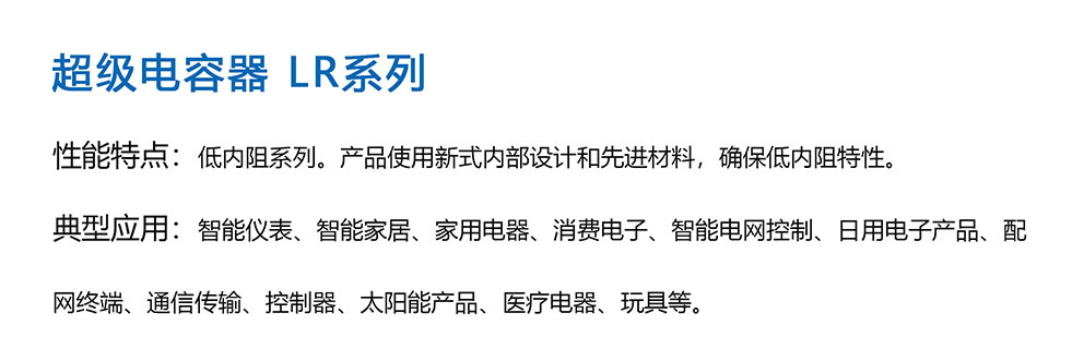 性能特點:低內(nèi)阻系列。產(chǎn)品使用新式內(nèi)部設(shè)計和先進材料,確保低內(nèi)阻特性.典型應(yīng)用:智能儀表、智能家居、家用電器、消費電子、智能電網(wǎng)控制、日用電子產(chǎn)品、配網(wǎng)終端、通信傳輸、控制器、太陽能產(chǎn)品、醫(yī)療電器、玩具等。